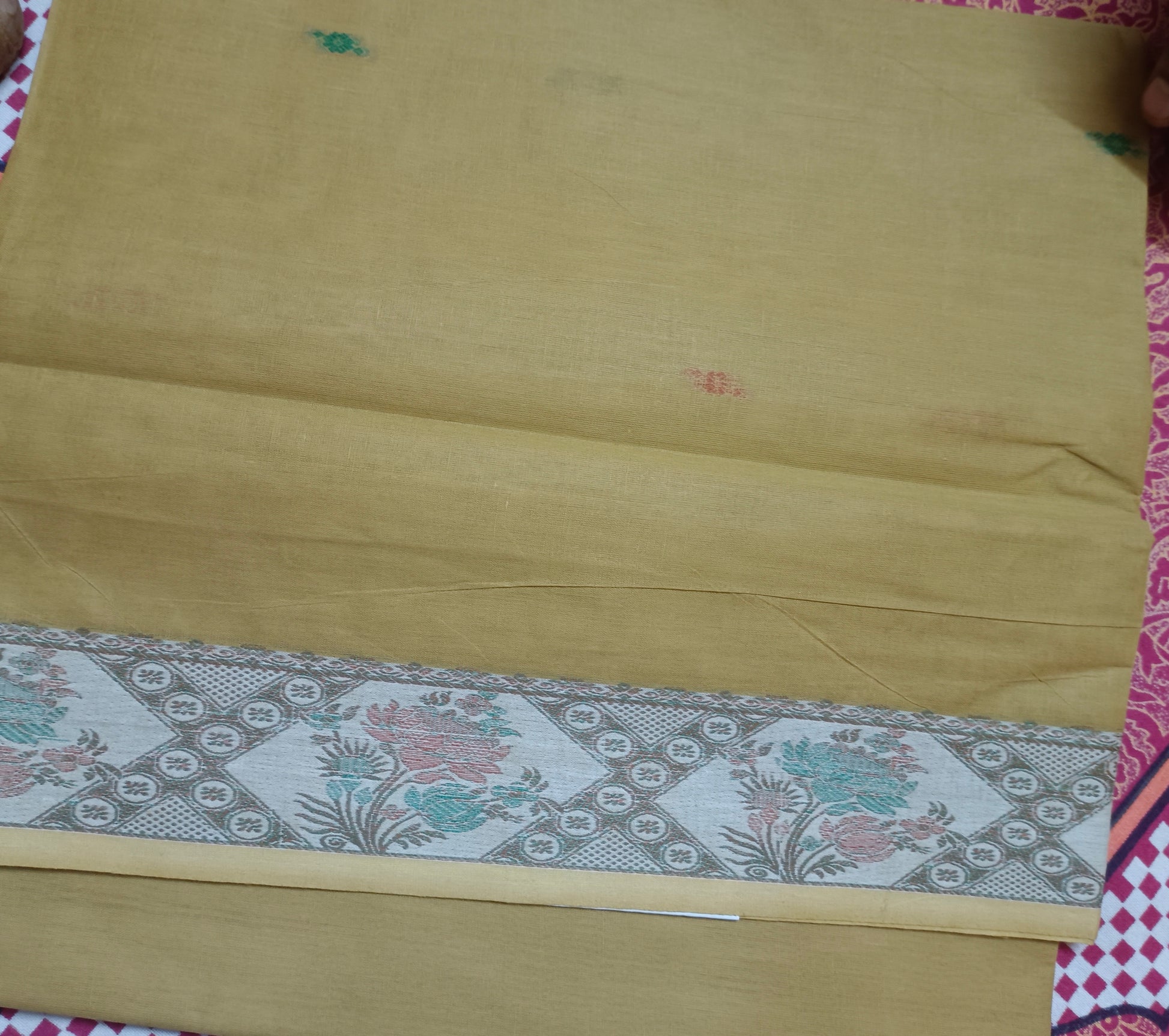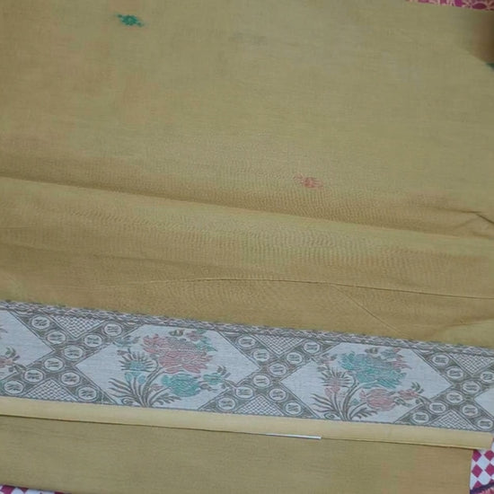 Light mustard is a warm, cheerful color that brightens any day. The multicolor border adds a playful touch while the soft handloom cotton ensures all-day comfort. Perfect for working women who want to look elegant without compromising on comfort.